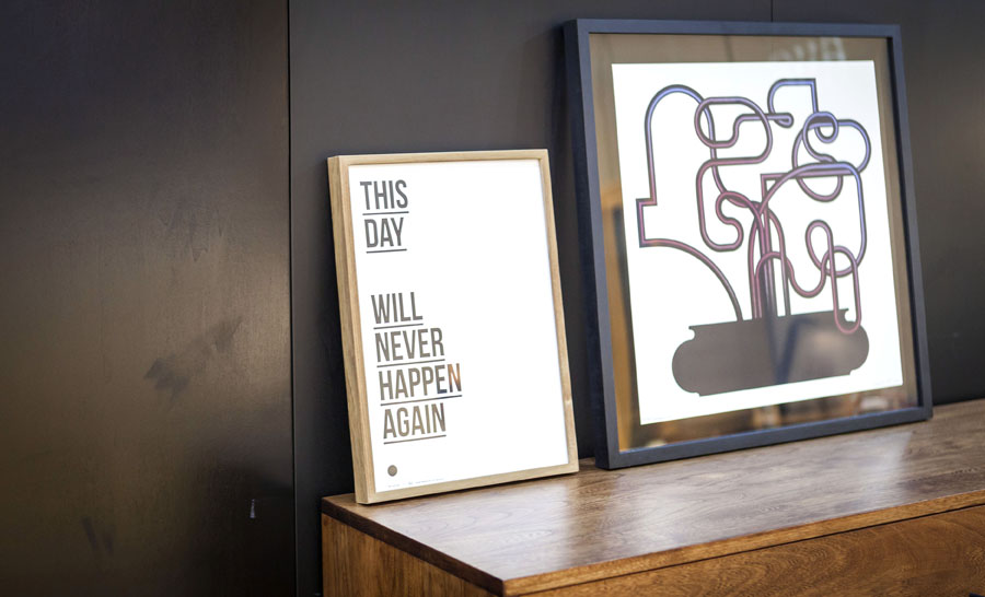 และ ภาพพิมพ์ในกรอบไม้สัก This day will never happen again โดย The Archivist