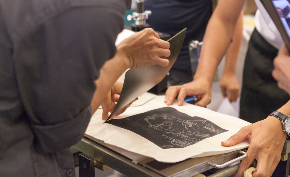 ทั้ง 3 เทคนิคนี้ได้รับเกียรติจาก ศาสตราจารย์ถาวร โกอุดมวิทย์ และคุณจักรี คงแก้ว ผู้เคยสร้างผลงานภาพพิมพ์ พระบรมฉายาสาทิสลักษณ์ของพระบาทสมเด็จพระปรมินทรมหาภูมิพลอดุลยเดช บรมนาถบพิตร แจกในงานบ้านและสวนแฟร์เมื่อปี 2560 พร้อมนักศึกษาปริญญาโท คณะจิตรกรรมประติมากรรมและภาพพิมพ์ มหาวิทยาลัยศิลปากร ร่วมสอนขั้นตอนการทำอย่างละเอียด ตั้งแต่การแกะแบบบนแผ่นกระเบื้องยางซึ่งใช้แทนแผ่นไม้ ขั้นตอนการกลิ้งสีบนแบบพิมพ์ และพิมพ์ภาพลงบนกระดาษ สำหรับเป็นงานศิลปะตกแต่งผนังบ้าน และพิมพ์ลงบนกระเป๋าผ้าบ้านและสวนเป็นไอเท็มเก๋ๆ ที่ทุกคนได้ใช้จริง ซึ่งบอกเล่าได้ชัดว่าศิลปะไม่ใช่เรื่องเข้าถึงยาก และไม่ยากเกินกว่าจะสร้างสรรค์ได้