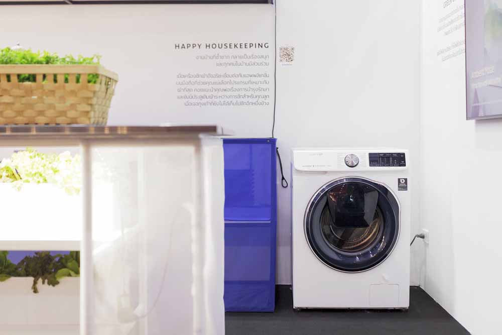 เมื่อเครื่องซักผ้าเชื่อมต่อกับแอพพลิเคชั่นบนมือถือ สามารถช่วยให้คุณแม่เลือกโปรแกรมที่เหมาะกับผ้าที่สุด และยังมีประตูเติมผ้าระหว่างการซักสำหรับคุณลูก เมื่อเจอถุงเท้าที่ยังไม่ได้เก็บไปซักอีกข้างหนึ่ง