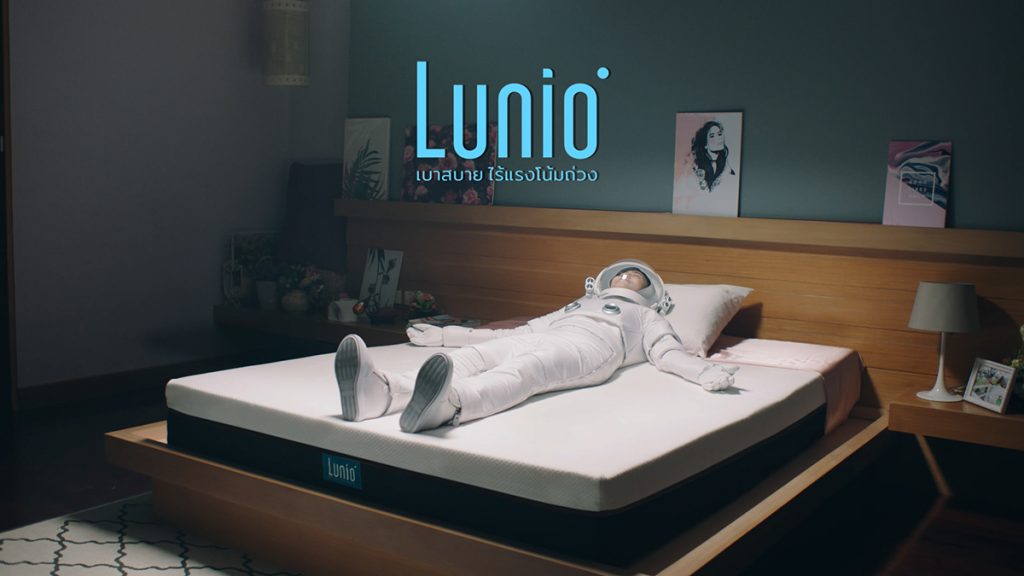 Lunio นั้นได้ทำแคมเปญ Video ขึ้นโดยในตัวแคมเปญนั้นได้เล่าเรื่องราวผ่าน 3 ตัวละครในวัยที่ต่างกัน ในแต่ละวัยนั้นต่างก็ต้องพบเจอกับปัญหาความอึดอัด ความกดดันต่าง ๆ แต่ไม่ว่าจะเป็นใครและวัยไหน หากได้ล้มตัวลงบนที่นอนยางพาราไฮบริด Lunio ก็เหมือนได้วางสิ่งที่น่าหนักใจเหล่านั้นลง พร้อมเคลิบเคลิ้ม ล่องลอย ไปกับความนุ่มสบายของ Lunio และหลับลึกราวกับหลุดไปยังห้วงอวกาศที่สงบ ปราศจากเรื่องน่ากังวลใจต่าง ๆ