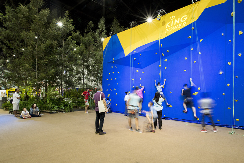 มาใช้กำลังกันบ้างกับหน้าผาจำลองให้คุณได้ขยับแข้งขาท้าความสูงไปพร้อมกับใช้กำลังขาและแขน รวมถึงรวบรวมสมาธิเพื่อปีนขึ้นไปยังจุดสูงสุดของหน้าผา โดยที่ไม่ต้องกลัวตกหรือได้รับอันตรายเพราะมีอุปกรณ์ป้องกันความปลอดภัยและผู้เชี่ยวชาญคอยดูแลอย่างใกล้ชิด บอกเลยว่าคุณต้องไม่เสียเหงื่อฟรีๆ เพราะหลังจากปีนหน้าผาเสร็จปั๊บ ก็ร่วมลุ้นรับของรางวัลมากมายจาก King Power ทั้งในรูปแบบของสินค้าต่างๆและส่วนลดในการช็อปออนไลน์อีกด้วย