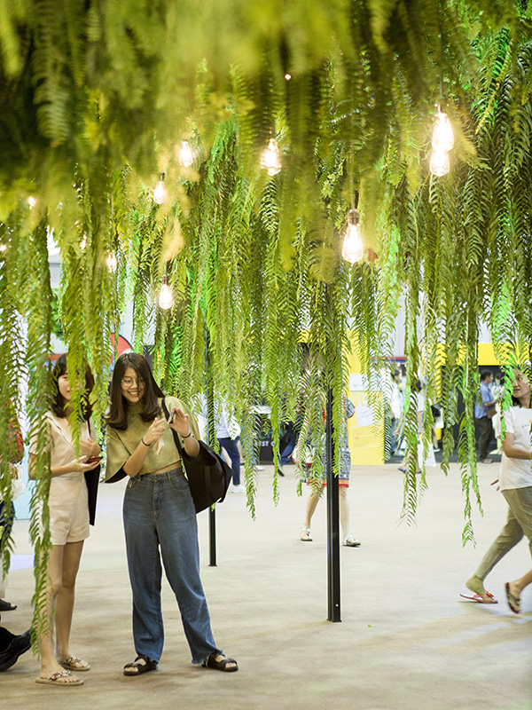 เข้ามาในงานปุ๊บ ก็ไม่ต้องไปไหนไกล แวะทักทายและถ่ายรูปกับซุ้มเฟินสไบนางที่ย้อยระย้ารอให้คุณไปสัมผัส เก็บภาพสวยๆในสไตล์ฮิปที่เป็นตัวคุณ กับพื้นที่ที่ออกแบบด้วยโครงเหล็กนั่งร้านแข็งแกร่งแต่กลับดูนุ่มนวลด้วยการสอดแทรกไม้แขวนประเภทเฟิน กลายเป็นจุดถ่ายรูปสีเขียวที่พร้อมให้คุณถ่ายรูปไปอวดชาวโซเชียลแบบเก๋ๆ