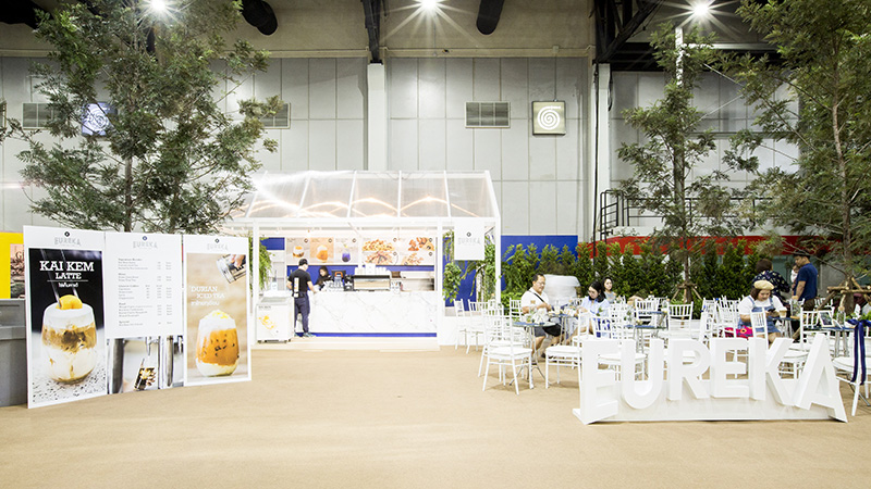 เดินเที่ยวถ่ายรูปกันจนจุใจแล้ว ก็มานั่งพักขา จิบกาแฟแบบชิลๆกันได้ที่ EUREKA COFFEE TAP คาเฟ่สุดเท่ที่พร้อมเสิร์ฟเครื่องดื่มเย็นๆ ในเมนูที่แค่เห็นรูปก็อดใจไม่ไหว ไม่ว่าจะเมนูซิกเนอเจอร์อย่าง KAI KEM LATTE กาแฟลาเต้หอมเข้ม กรุบกริบด้วยไข่เค็มหวานมัน ท็อปปิ้งด้วยทองหยอด จนกลายเป็นเมนูแปลกใหม่ไม่เหมือนใคร หรือจะเป็นเมนูชาไทยทุเรียนก็น่าลองไม่แพ้กัน กินหวานแล้วต้องต่อด้วยเมนูอาหารคาวสไตล์ฟิวชั่น ให้ได้อิ่มท้องกับเมนูแนะนำอย่างคาโบนาร่าไข่เค็ม และปีกไก่ทอดซอสฮันนี่