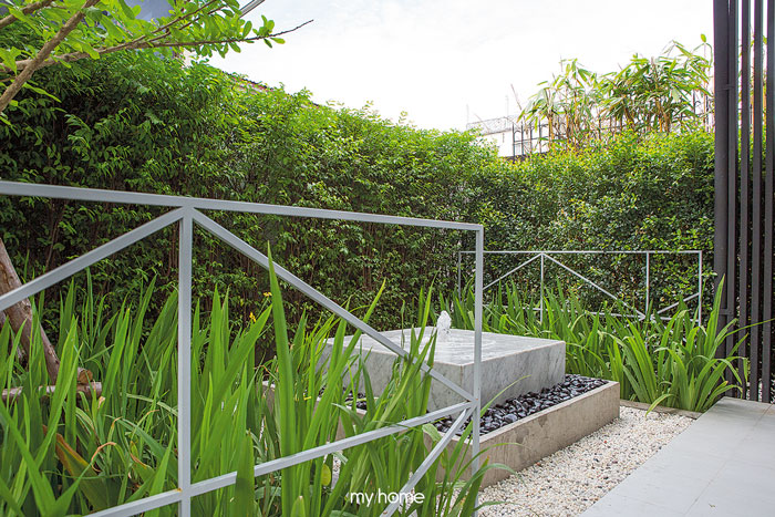 แม้ใครจะมองว่าสวนสไตล์มินิมัลดูเรียบง่ายแต่สำหรับเจ้าของบ้านและผู้ออกแบบ เสน่ห์ที่น่าหลงใหลของสวนนี้คือ เส้นสายที่ทำให้เกิดรูปทรงต่าง ๆ การใช้วัสดุช่วยสร้างองค์ประกอบให้สวนดูสมบูรณ์ รวมทั้งพรรณไม้ที่มีฟอร์มเป็นเอกลักษณ์เฉพาะตัวถึงแม้จะมีน้อยชนิด แต่เมื่อทุกอย่างได้รับการจัดวางถูกที่ ถูกตำแหน่ง ก็ทำให้พื้นที่ขนาดจำกัดทั้งสวยและเต็มไปด้วยฟังก์ชันการใช้งานไม่แพ้สวนพื้นที่ขนาดใหญ่เลยละครับ