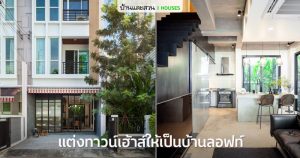 จากทาวน์เฮ้าส์หลังเก่าซอมซ่อควรแก่การบ่ายหน้าหนี เมื่อถูกกะเทาะเปลือกความหม่นหมองที่นอนก้นอยู่ในกาลเวลาทิ้ง โดยสองคู่รักสถาปนิก คุณซัน-ศรัญญู เอื้อวิเศษวัฒนา และคุณทราย-นภัทร สำเภาทอง โครงสร้างเดิมที่แฝงด้วยความงามจึงกลับมาเฉิดฉายมีชีวิตชีวาอีกครั้ง