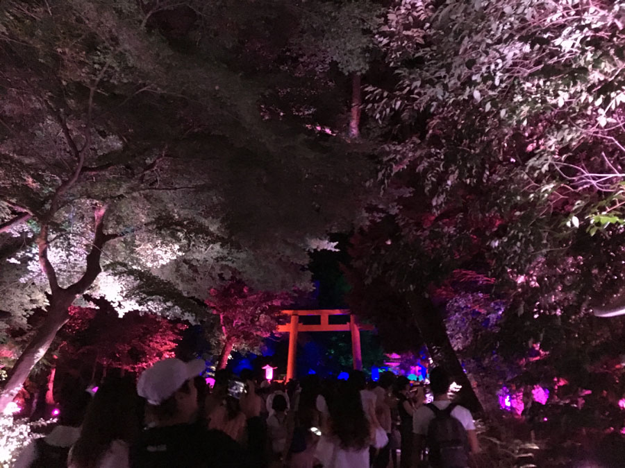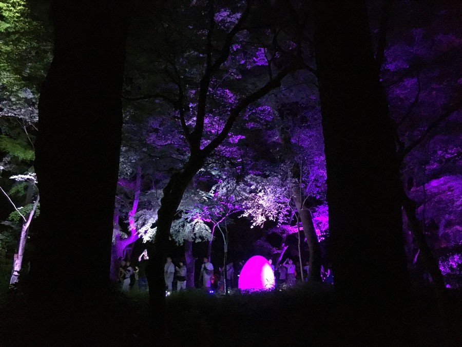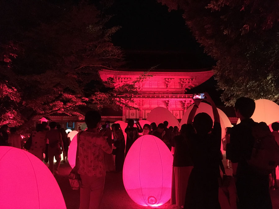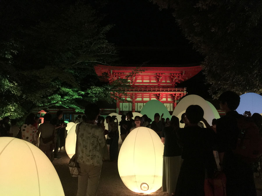 ฉันค่อย ๆ เดินตามผู้คนมากมาย ผ่านอุโมงค์ป่าที่ถูกย้อมด้วยแสงสีอันสดใส ที่ปรับเปลี่ยนไปตลอดช่วงเวลา จนพบกับประตูศาลเจ้าชิโมกาโมะที่อยู่ด้านลึกที่สุดของป่า ในบริเวณศาลเจ้านั้นอัดแน่นด้วยไข่ประหลาดจำนวนมาก บางอันก็ลอยตุ๊บป่อง บางอันก็เข้าไปแออัดกันอยู่บนศาลเจ้าอย่างน่าเอ็นดู และที่น่ารักเอ็นดูกว่านั้นคือ ปฏิกริยาของบรรดามนุษย์รอบตัวฉัน คู่กิ๊ก เด็ก ครอบครัว คู่คุณลุงคุณป้า ซาราลี่มัง ฯลฯ ที่สีหน้าดูแสนมีความสุข และชี้ชวนกันเล่นกับเจ้าไข่เรืองแสงเหล่านั้น