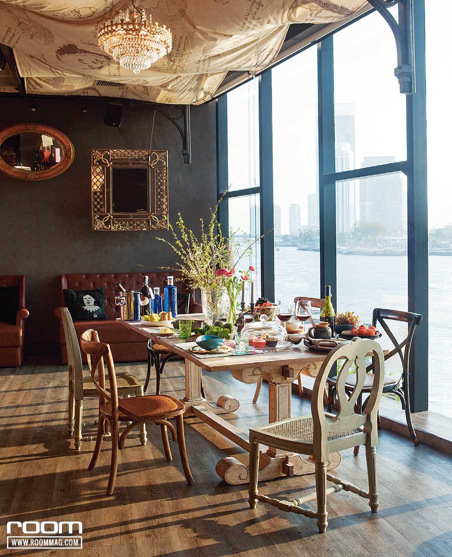 สําหรับปาร์ตี้เล็กๆ นอกจากวิวสวยๆ และสเปซสุดชิค ที่แสนอบอุ่นแล้ว ความตื่นตาตื่นใจที่สุดของงานคงหนีไม่พ้นการ “จัดโต๊ะอาหาร” คุณเติ้ลเลือกใช้ดอกไม้เป็นจุดนำสายตา โดยจัดให้มีลักษณะเป็นรูปทรงสามเหลี่ยม คือ มีแจกันขนาดใหญ่ทรงสูง ตั้งเป็นศูนย์กลางของโต๊ะ แล้วเพิ่มแจกันขนาดกลาง หรือเล็ก และเชิงเทียนขนาด ลดหลั่นกันลงมาให้ดูมีมิติรอบด้าน