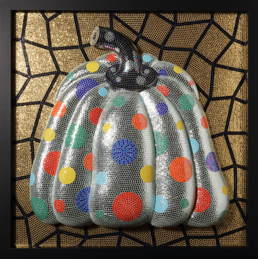 ผลงาน ฟักทองสีเงินพื้นผิวสไตล์งานโมเสก “I Carry On Living With The Pumpkins” (Silver Pumpkin)