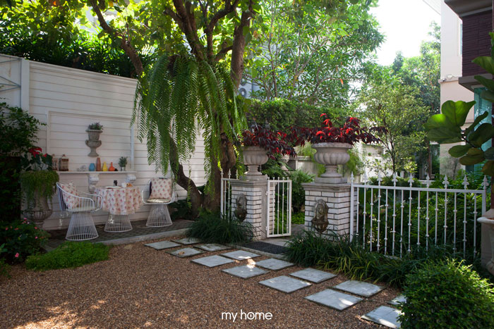 เมื่อประตูรั้วเปิดออก my home ก็รู้สึกแปลกใจกับความหวานของ สวนอังกฤษ แห่งนี้เป็นผลงานการจัดสวนทั้งหมดนี้ได้รับการถ่ายทอดโดย คุณศักดิ์ เรืองพร้อม นักจัดสวนเจ้าของผลงานหวานสไตล์สวนอังกฤษที่หลายคนคุ้นหน้าคุ้นตากันเป็นอย่างดี