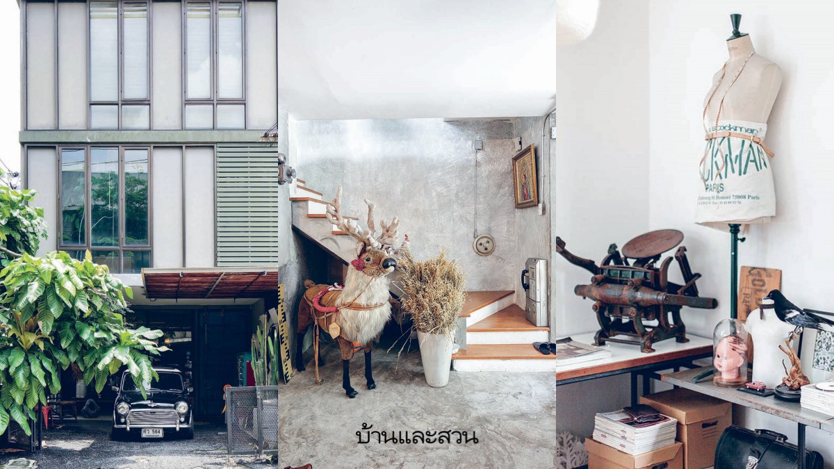 “เมื่อก่อนบ้านเราอยู่แถวเทพารักษ์เป็นบ้านเก่า 50 ปี เราคุ้นเคยอยู่กับชีวิตในยุคนั้นมันทำให้เราชอบของเก่าและเฟอร์นิเจอร์เก่าไปด้วย พอมาซื้อทาวน์โฮมนี้ก็อยากทะลายความเป็นบ้านทรงกล่องนี้ออกไป ทำลายความเนี้ยบแบบหมู่บ้านจัดสรร แล้วปล่อยให้ทุกอย่างดูเป็นธรรมชาติ มันเป็นความรู้สึกที่ดีสำหรับเรา”