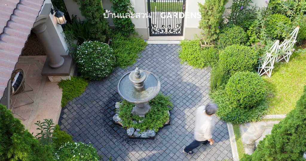 นำองค์ประกอบหลากหลายสไตล์มาใช้ตกแต่งสวน ทั้งยุโรป ทรอปิคัล และโมเดิร์น ทำให้สวนมีความแตกต่างไม่เหมือนใคร