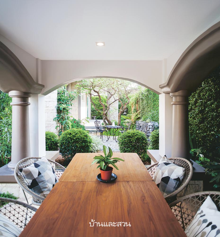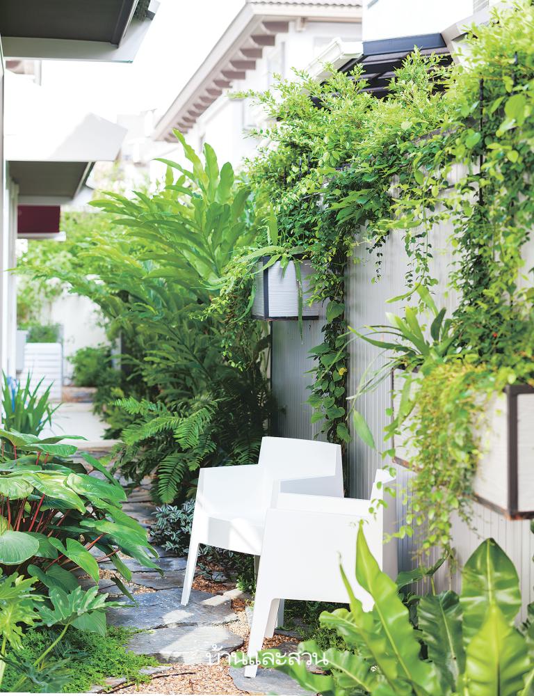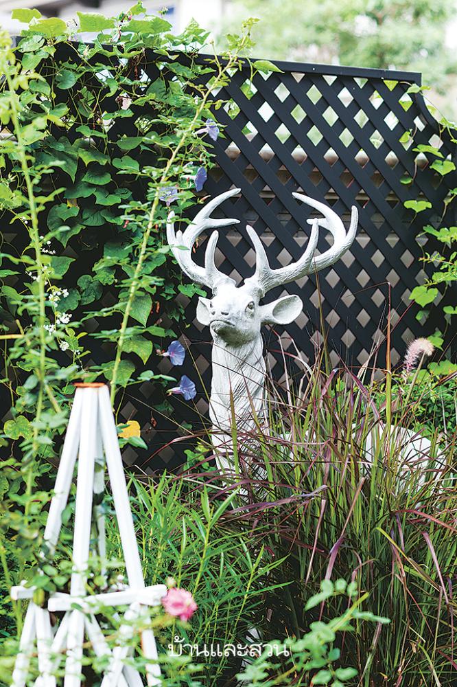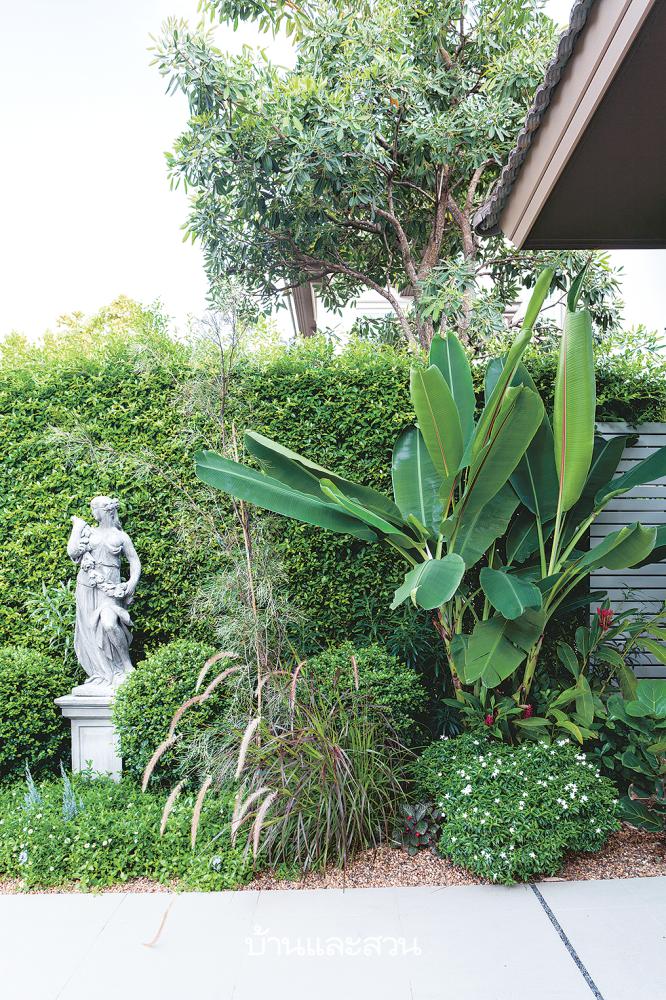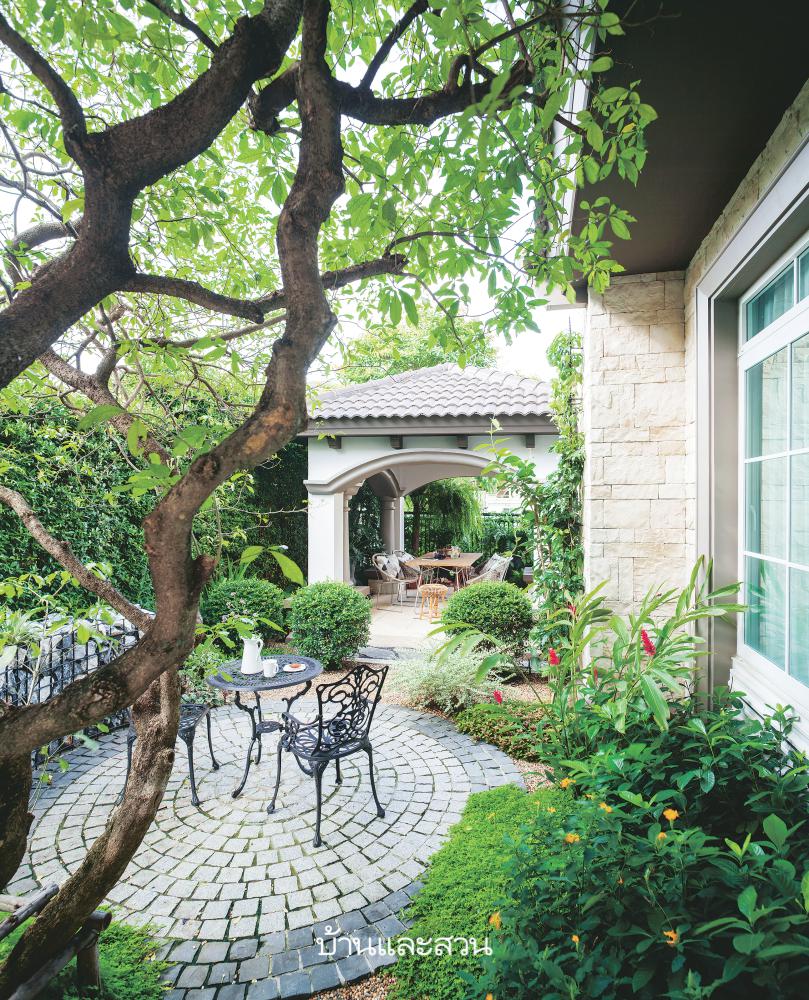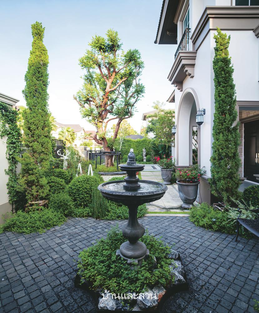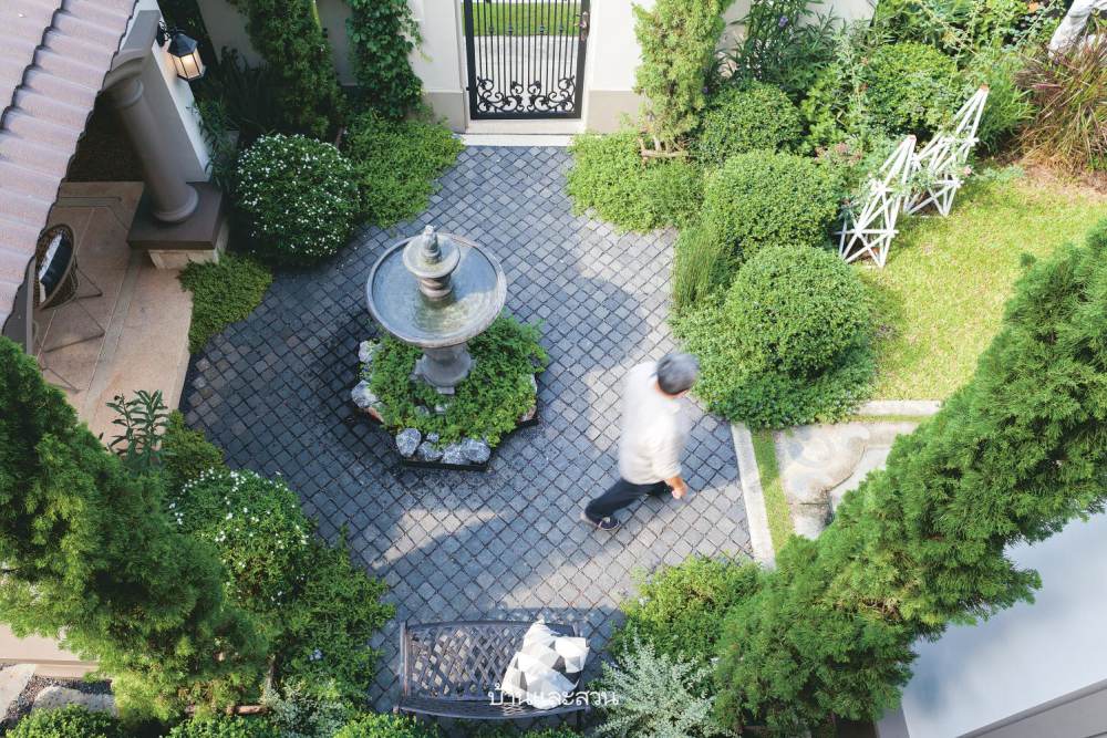 นำองค์ประกอบหลากหลายสไตล์มาใช้ตกแต่งสวน ทั้งยุโรป ทรอปิคัล และโมเดิร์น ทำให้สวนมีความแตกต่างไม่เหมือนใคร