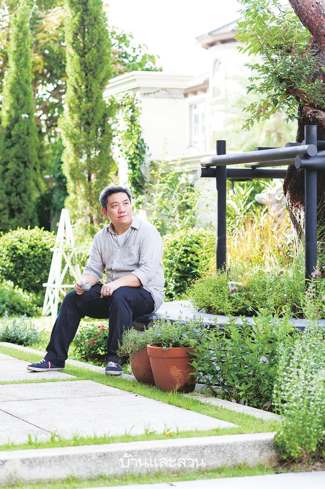 “ถ้าถามผมว่าสวนนี้เป็นสไตล์อะไร ผมตอบไม่ได้ เพราะผมใส่ทุกอย่างที่คิดลงไป ในแต่ละวันที่จัดสวนก็จะมีความคิดไม่เหมือนกัน” สวนอังกฤษ