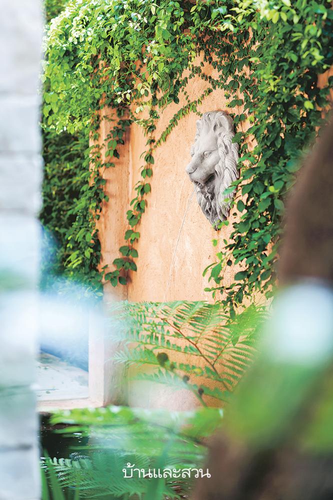 “เจ้าของสวนให้อิสระในการจัดสวน ผมจึงใส่ความแปลกใหม่และไอเดียต่างๆไปเต็มที่ ตั้งใจลดทอนความเป็นสวนอังกฤษแบบที่เคยทำมาก่อนหน้านี้ลง แล้วเพิ่มความเป็นสวนทรอปิคัลและโมเดิร์นลงไปด้วย ทำให้ได้ความหลากหลาย ไม่เป็นสไตล์ใดสไตล์หนึ่งจนเกินไป อย่างบริเวณน้ำพุหัวสิงโตที่มีความเป็นอิตาลีชัดเจน เราก็คลุมบริเวณรอบๆด้วยพรรณไม้สไตล์ทรอปิคัล ทำให้ดูไม่เหมือนใครครับ” คุณศักดิ์เล่า