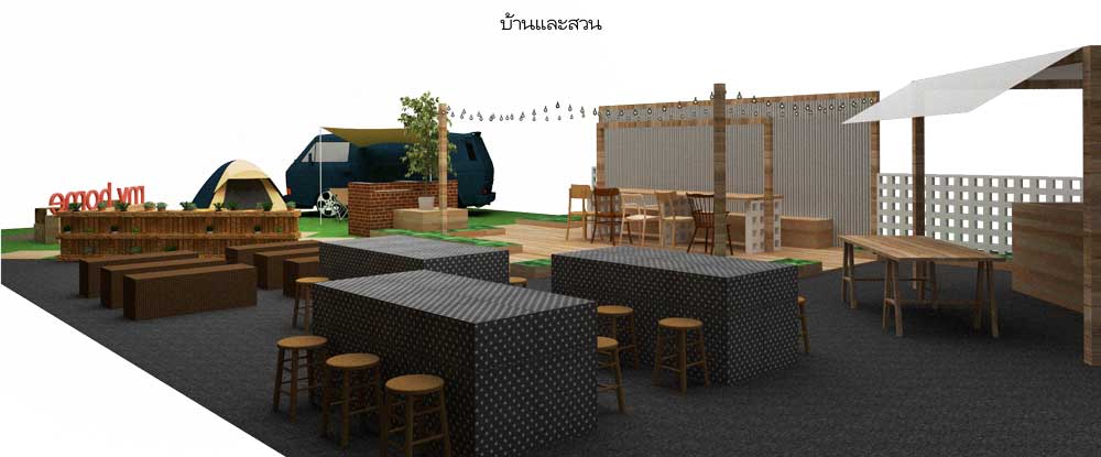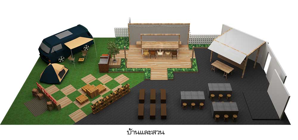 - Outdoor Dining จัดพื้นที่ในสวนให้กลายเป็นโต๊ะดินเนอร์ตัวยาวสำหรับปาร์ตี้ยามค่ำคืน ใช้วัสดุง่ายๆใกล้ๆตัวอย่างผนังสังกะสีที่คุ้นเคย หรืออิฐช่องลมที่นำมาทำเป็นขาโต๊ะ ตกแต่งด้วยไฟปิงปองให้ดูสนุกสนาน สมกับเป็นบรรยากาศแห่งการปาร์ตี้ของครอบครัวและญาติมิตร ยิ่งในช่วงฤดูหนาวที่อากาศเป็นใจ การได้ออกมานั่งรับประทานอาหารร่วมกับครอบครัว ยิ่งทำให้มื้อค่ำในสวนหลังบ้านเป็นมื้อที่แสนพิเศษสำหรับทุกคน