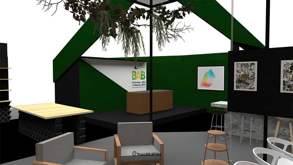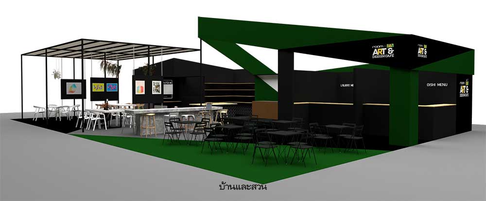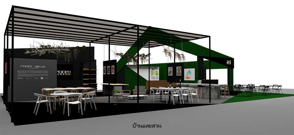 room x BAB Art & Design Cafe ป็อบอัพคาเฟ่ในบรรยากาศสร้างสรรค์ที่จะคอยให้บริการผู้มาเยือนด้วยกาแฟและขนมสไตล์โฮมเมดสุดละเลียด พร้อมด้วยเมนูเครื่องดื่มเย็น ๆ และอาหารรับประทานเล่นสุดพิเศษ เคล้าคลอไปกับเสียงเพลงเพราะ ๆ จากวงดนตรีสด นอกจากนี้ยังสอดแทรกไอเดียการใช้วัสดุและการตกแต่งคาเฟ่กระจายอยู่ตามจุดต่าง ๆ รอให้คุณมาเก็บเกี่ยวไอเดียนำไปประยุกต์ใช้กับพื้นที่พักผ่อนของคุณเอง