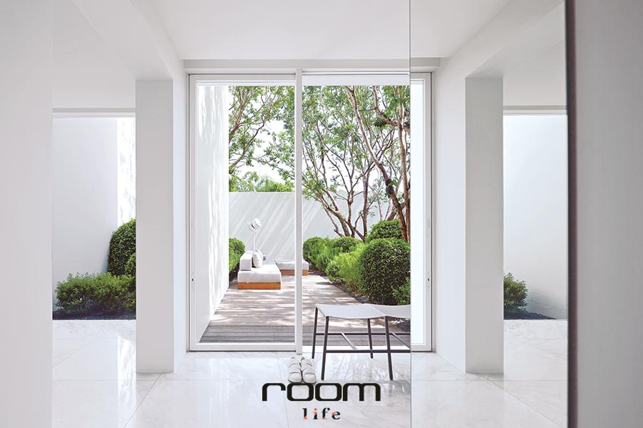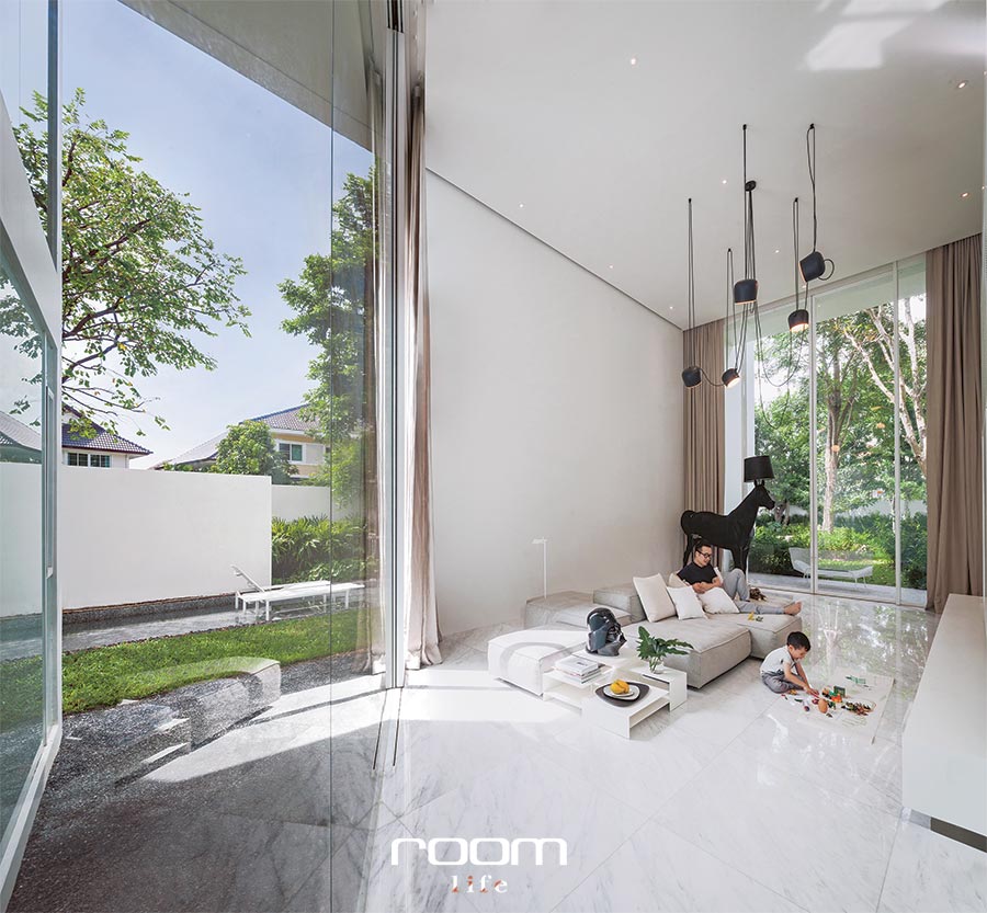 ธรรมชาติกับสถาปัตยกรรมปฏิสัมพันธ์กันอย่างเงียบ ๆ ในขณะที่เราขอผลุบหลบแดดเปรี้ยงเข้าไปยังเบื้องหลังกำแพงสีขาว ไม่นานนักเจ้าของบ้านก็เดินเข้ามาทักทาย คุณป๊อก – อรรถพร กับ คุณเพียว – รมณี และน้องพูมิ ออกมาต้อนรับเราอย่างพร้อมหน้าในบ้านหลังใหม่ของครอบครัวคบคงสันติ ซึ่งทั้งสามเพิ่งย้ายเข้ามาพักอาศัยได้ไม่นาน หลังจากที่บ้านต้องผ่านการออกแบบและก่อสร้างยาวนานร่วม 6 ปี จนมาลงตัวกับบ้านที่โดดเด่นด้วยบรรดากำแพงสีขาวสะอาดตาสูงตระหง่าน บ้านซึ่งไม่ว่าใครที่ได้เห็นก็คงบอกได้ในทันทีว่าต้องผ่านฝีมือของนักออกแบบมือฉมังมาอย่างไม่ต้องสงสัย อ่านต่อ…
