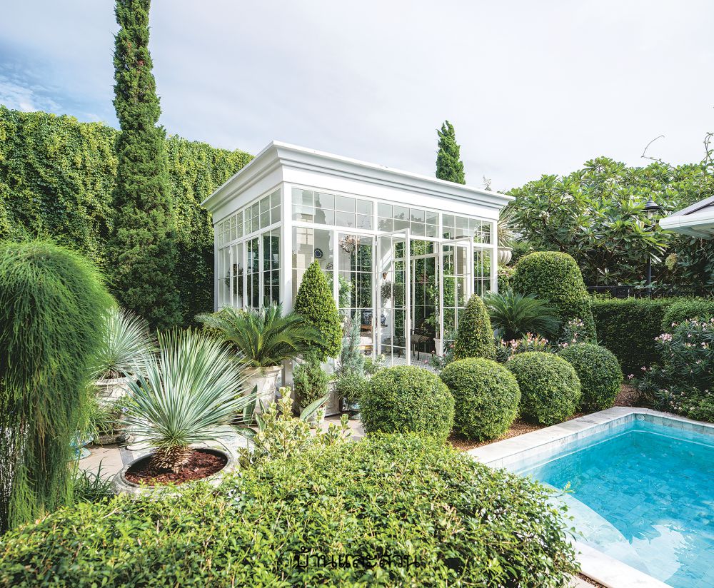 จุดเริ่มต้นจากการหลงใหลการสะสมของเก่าของ นายแพทย์สุวิน ไกรภูเบศ ประธานเจ้าหน้าที่บริหาร บริษัทบิวตี้ คอมมูนิตี้ จำกัด(มหาชน) ต่อยอดมาสู่การออกแบบบ้านและสวนสวยในคอนเซ็ปต์อินดัสเทรียลลอฟต์ ผสานความงามที่มีกลิ่นอายคลาสสิกไว้ได้อย่างลงตัว ลบภาพเก่าบนเนื้อที่ราว 3 ไร่ครึ่งที่เคยเป็นสวนมะพร้าวออกไปอย่างสิ้นเชิง บ้านพักตากอากาศหลังงามริมแม่น้ำแม่กลองกับสวนสวยท่ามกลางสายหมอกจางๆ ยามเช้าเป็นภาพมุมสูงที่เรามองเห็นจากบนหอคอยที่อยู่ติดกับตัวบ้าน ซึ่งเผยให้เห็นแผนผังการจัดวางอย่างเหมาะสมและลงตัวตามแบบฉบับสวนยุโรป โดยได้ คุณโต้ง – ศุภกิจ มีลาภ จากสุขเย็นการ์เด้นท์เป็นผู้ออกแบบและจัดสวนทั้งหมด อ่านต่อ…