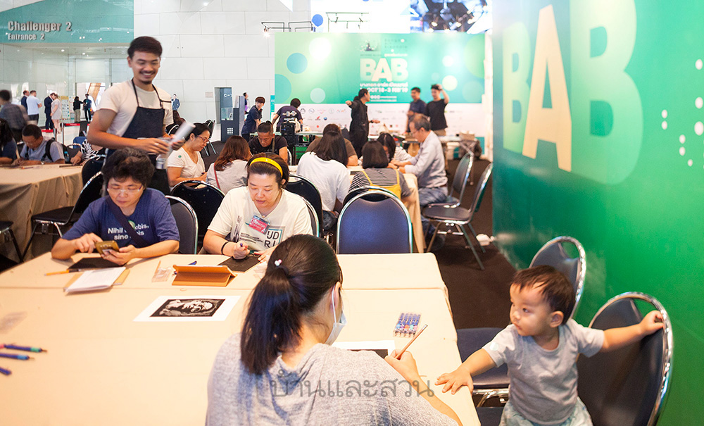 BAB Workshop กลับมาอีกครั้ง ตามคำเรียกร้อง กับ กิจกรรม สนับสนุนโดย บริษัท ไทยเบฟเวอเรจ จำกัด (มหาชน) หนึ่งในกิจกรรมเพื่อร่วมเฉลิมฉลองเทศกาลศิลปะร่วมสมัย “บางกอก อาร์ต เบียนนาเล่ 2018” (Bangkok Art Biennale 2018 ที่จะทำให้ทุกท่านได้มาร่วมสนุกสร้างผลงานศิลปะภาพพิมพ์ของตนเอง