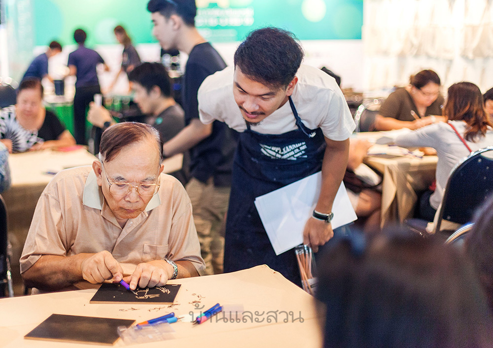 วานนี้(26 ตุลาคม 2561) BAB Workshop#2 ได้เริ่มขึ้นแล้วในงานบ้านและสวนแฟร์ 2018 ‘‘Massclusive’ ณ ชาเลนเจอร์ฮอลล์ อิมแพ็ค เมืองทองธานี โดยผู้ที่มาร่วม workshop ได้เรียนรู้วิธีการทำภาพพิมพ์แบบแกะไม้ซึ่งเป็นเทคนิคการทำภาพพิมพ์สุดคลาสสิก และงานนี้ได้ผู้เชี่ยวชาญอย่าง อ. จักรี คงแก้ว ผู้เคยสร้างผลงานภาพพิมพ์ พระบรมฉายาสาทิสลักษณ์ของพระบาทสมเด็จพระปรมินทรมหาภูมิพลอดุลยเดช บรมนาถบพิตร แจกในงานบ้านและสวนแฟร์เมื่อปี 2560 และ เป็นผู้ให้ความรู้กิจกรรม BAB Workshop #1 ในงานบ้านและสวนแฟร์ Midyear ที่ผ่านมา เป็นผู้สอนเทคนิคและตอบข้อสงสัยต่างๆ โดยมีนักศึกษาระดับปริญญาโท คณะจิตรกรรมประติมากรรมและภาพพิมพ์ มหาวิทยาลัยศิลปากร มาดูแลผู้เข้าร่วม workshop แต่ละคนอย่างใกล้ชิด ซึ่งบรรยากาศในวันนี้เต็มไปด้วยความสนุกสนาน และ รอยยิ้ม เรียกได้ว่า สุดสะพรั่งด้วยพลังอารต์กันไปเต็มๆ