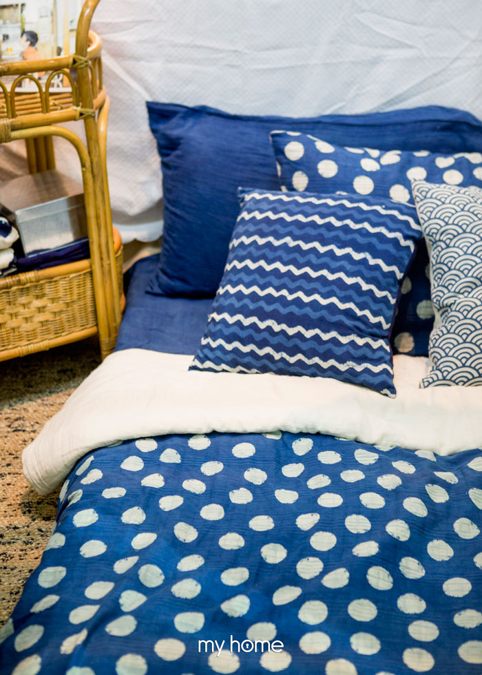 นอกจากเสื้อผ้าฝ้ายสีครามที่มักจะเป็นที่ถูกอกถูกใจของคนสายคราฟท์อยู่มากพอดูแล้ว เสน่ห์ของสีสันและขั้นตอนการทำ รวมไปถึงความใส่สบายของผ้าฝ้ายย้อมครามน่าจะไปประแทกใจแบรนด์เครื่องนุ่งห่ม อยู่ไม่น้อยจึงดัดแปลงจากผ้าฝ้ายที่มาในลักษณะเสื้อผ้า กลายร่างเป็นชุดเครื่องนอนแทนการสวมใส่ ทั้งปลอกหมอนอิง ปลอกหมอนหนุน ผ้าปูที่นอน ปลอกผ้านวมก็ล้วนแต่ตัดเย็บขึ้นจากผ้าฝ้ายย้อมสีธรรมชาติทั้งนั้นเลยค่ะ รับประกันความนุ่มและอบอุ่นอย่างแน่นอน สีสันและลวดลายก็มีให้เลือกกันอย่างหลากหลายส่วนใหญ่จะเน้นไปที่โทนสีคราม มีทั้งผ้าย้อมคราม ย้อมฮ่อม และผ้าฝ้ายออแกนิค จะแบบไหนความน่ารักก็กินกันไม่ลงจริงๆค่ะ นอกจากนี้ยังมีเสื้อผ้าจากผ้าฝ้ายธรรมชาติจำหน่ายอีกนะ