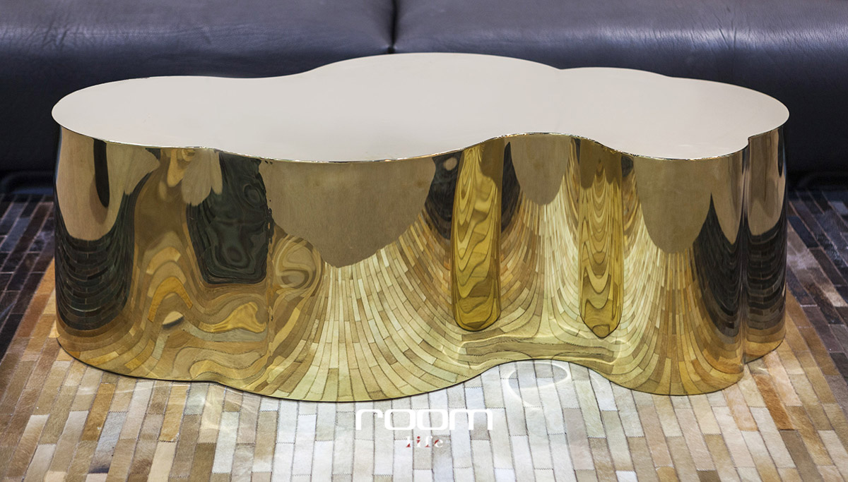 - โต๊ะกลางสแตนเลส ทำสีทอง รุ่น Replica Karl Springer แบรนด์ Lounge Lovers ขนาด 130 x 70 x 40 เซนติเมตร