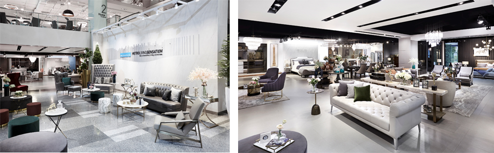 สำหรับชั้นสอง Metropolitan Living บอกเล่าไลฟ์สไตล์แบบคนเมืองผ่านรูปแบบสินค้าสไตล์ Modern Contemporary ที่เรียบเท่ สบาย และผ่อนคลาย ตอบโจทย์ได้หลากหลายตามรูปแบบการใช้งาน และขนาดของพื้นที่ที่แตกต่างกัน รองรับทั้งกลุ่มลูกค้ารายย่อยและกลุ่มลูกค้างานโครงการที่พักอาศัยได้พร้อมๆ กัน แบ่งพื้นที่ออกเป็น Space Solution หรูหราและทันสมัยด้วยระบบเฟอร์นิเจอร์กึ่ง Built-in ที่สามารถสร้างห้องเสื้อผ้าส่วนตัวแบบ Panorama พร้อมเชื่อมต่อกับตู้เสื้อผ้าแบบลอยตัวได้ในพื้นที่เดียวกัน นอกจากนี้ยังมี The Living Showcase ตอบสนองการใช้ชีวิตของคนเมืองที่มีแนวโน้มพักอาศัยบนคอนโดมิเนียมมากขึ้น โดยจำลองห้องตัวอย่างแต่ละสไตล์ พร้อมฟังก์ชั่นการใช้งานที่ลงตัวกับทั้งพื้นที่และไลฟ์สไตล์ เพื่อสร้างคุณภาพชีวิตที่ดีผ่านสินค้าระดับพรีเมี่ยม ไม่ว่าจะเป็นแบบห้อง Studio, 1 Bedroom, 2 Bedrooms หรือ Penthouse ส่วนสุดท้าย Hospitality Collection นำเสนอสินค้ากลุ่มเลานจ์หลากหลายรูปแบบเพื่อการพักผ่อนที่สมบูรณ์แบบ