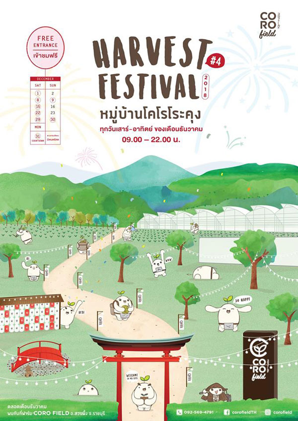 บริษัท โคโร บราเธอร์ จำกัด บริษัทที่ดูแลและบริหารสถานที่ท่องเที่ยว CORO FIELD จังหวัดราชบุรี , ร้าน CORO FIELD Café และร้าน CORO FIELD Dessert กรุงเทพฯ จัดงานเทศกาล “HARVEST FEST. ปี 4 ตอน เทศกาลหมู่บ้านโคโรโระคุง”
