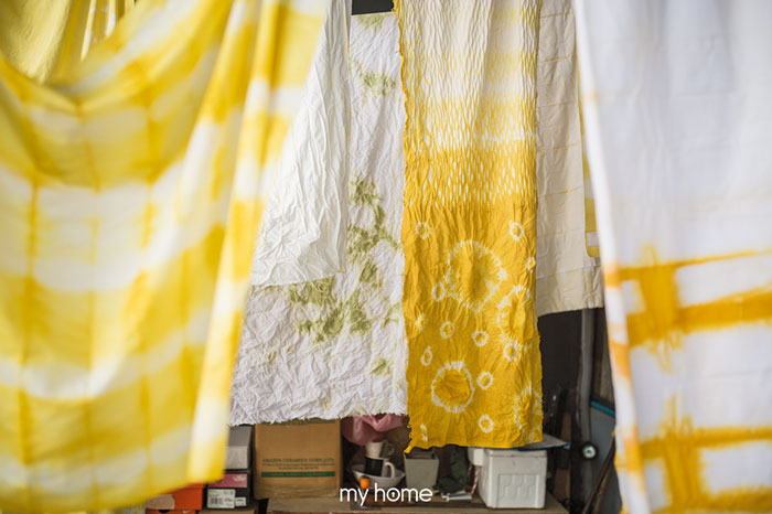 พื้นที่ที่โดยวัสดุต่างๆ รักเอาไว้จะเป็นพื้นที่ที่ไม่โดนสี เพราะฉะนั้นอยากได้ผ้ามัดย้อมลวดลายแบบไหนก็สามารถสร้างสรรค์ได้จากวัสดุเหล่านี้เลย