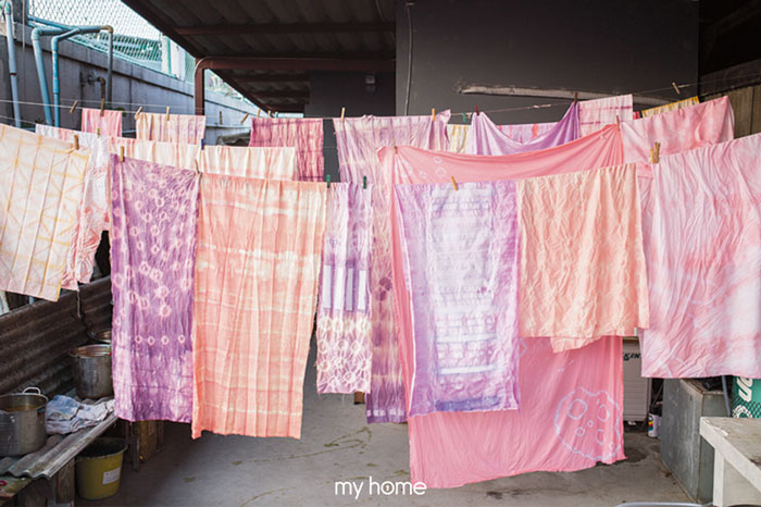 - ครบกำหนดเวลาแล้วนำผ้าขึ้นจากหม้อ นำไปล้างด้วยน้ำสะอาด 3 – 4 รอบแบบไม่ต้องขยี้ผ้า จากนั้นทำผ้าไปตากลมให้แห้ง
