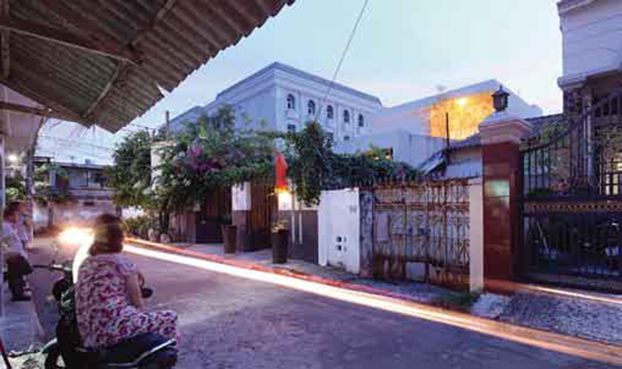 บ้านหลังนี้ตั้งอยู่ในซอยเล็กๆของชุมชน Govap ซึ่งส่วนใหญ่เป็นบ้านพักอาศัย ทีมงาน “บ้านและสวน” ขับรถผ่านหน้าบ้านนี้ไปโดยไม่ทันสังเกต เพราะแทบจะกลมกลืนไปกับบ้านในละแวกนั้น ด้วยตัวบ้านสองชั้นที่ไม่ได้สูงสะดุดตา รวมถึงมีแนวรั้วประตูไม้ที่ปลูกไม้เลื้อยและม่านบาหลีพรางสายตา