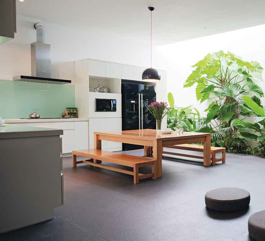 บ่อยครั้งที่ความคิดของเรามักตีกรอบว่าพื้นที่ในบ้านคือที่อยู่อาศัย ส่วนพื้นที่นอกบ้านมีไว้ปลูกต้นไม้ ซึ่งหากรวมพื้นที่ภายในและภายนอกบ้านให้เป็นเรื่องราวเดียวกันแล้ว บ้านจะน่าอยู่สักแค่ไหน… บ้านหลังนี้เป็นงานออกแบบที่ดีอีกหลังในนครโฮจิมินห์ซิตี้ ประเทศเวียดนาม ลักษณะเป็นบ้านคล้ายทาวน์เฮ้าส์ (City Box-House) กว้าง 8 เมตร ยาว 22 เมตร ซึ่งร้อยเรียงพื้นที่ภายในและภายนอกให้เป็นเรื่องราวเดียวกันได้อย่างน่าอยู่
