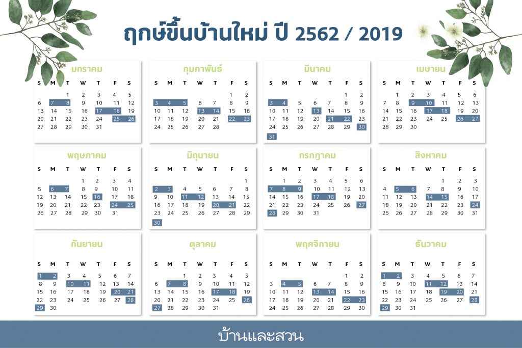 แจกฟรี ปฏิทินบ้านและสวนปี2562/2019 พร้อมฤกษ์ขึ้นบ้านใหม่