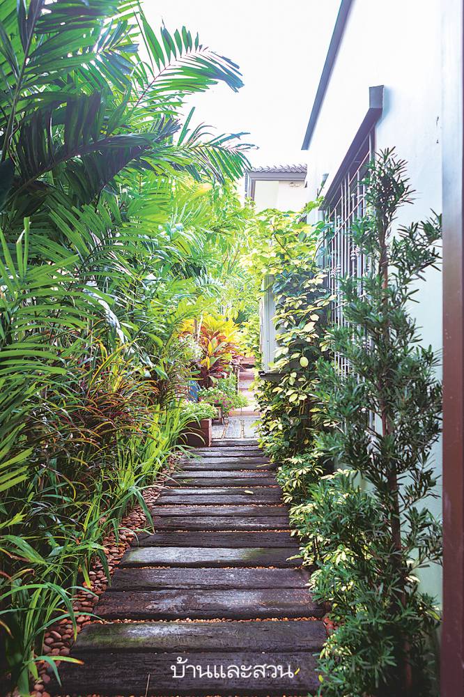 “เป็นคนชอบสวนแบบทรอปิคัลหรือสวนบาหลีมาแต่ไหนแต่ไร ตามหานักออกแบบจัดสวนที่ถูกใจโดยดูผลงานของหลายๆ คน จนวันหนึ่งได้ดูรายการ The Gardener คนรักสวน เห็นผลงานของ คุณทินกร ศรีวัฒนะธรรมา ก็ชอบมากครับ นั่นเป็นจุดเริ่มต้นที่ทำให้ได้รู้จักกัน และให้เขามาออกแบบสวนที่บ้านให้ทั้งหมด ไม่ได้ตั้งโจทย์หรือมีความต้องการอะไรมาก แค่อยากได้สวนทรอปิคัล มีน้ำตก บ่อปลา ชอบธรรมชาติ ชอบไม้ และอยากได้ต้นไม้โบราณ ส่วนทางบ้านพี่สาวขอสวนที่ดูน่ารัก”