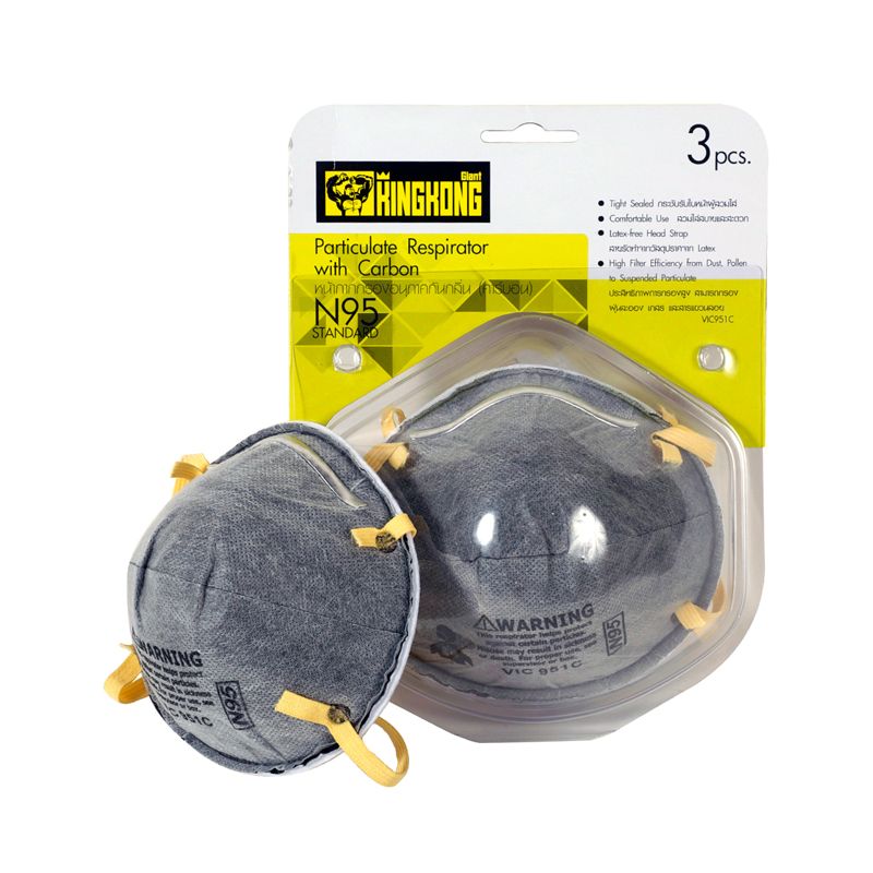4 | GIANT KINGKONG หน้ากากกรองอนุภาค รุ่น VIC951C-3PC ขนาด 13 x 13 x 20 ซม. (แพ็ค 3 ชิ้น) สีเทา ป้องกันฝุ่นละอองหรือละอองสีที่เกิดในงานก่อสร้าง งานพ่นสี ที่มีขนาดเล็กถึง 0.3 ไมครอน ออกแบบให้กระชับใบหน้า ระบายอากาศได้ดี : สินค้าจาก Baan&Beyond