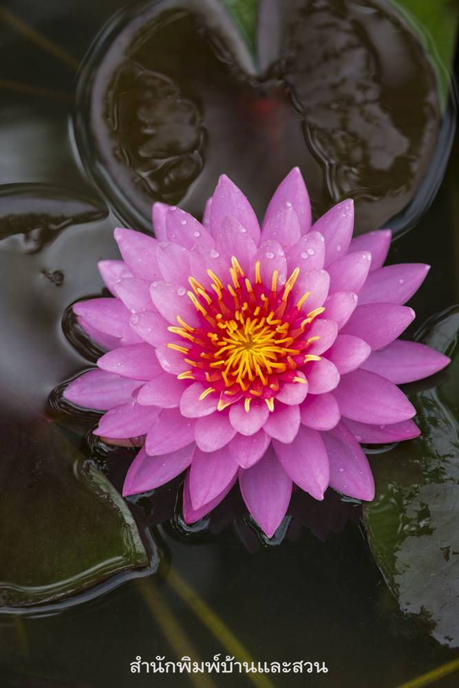 - ย้ายลงอ่างใหม่ต้อนรับฤดูร้อนกัน… หลังจากปลูกเรียบร้อย ค่อยๆ หย่อนกระถางบัวลงในอ่าง ใช้อิฐหนุนภาชนะเพื่อให้ผิวดินอยู่ต่ำกว่าผิวน้ำประมาณ 10 เซนติเมตร ทิ้งไว้สักพักน้ำจะใส อีก 1-2 สัปดาห์ต้นบัวจะเริ่มผลิใบใหม่ให้เห็น ค่อยๆ ปรับความลึกให้มากขึ้น ไม่นานก็จะแตกตุ่มดอกให้เห็นค่ะ สิ่งสำคัญคือ ตำแหน่งที่วางอ่างบัวต้องมีแสงแดดส่องถึงอย่างน้อย 4-6 ชั่วโมง หมั่นดูแลไม่ให้มีหอยหรือแมลงศัตรูกัดกินใบและยอด และเติมน้ำไม่ให้พร่อง หมั่นเด็ดใบเสียออกบ้าง เมื่อไรที่เห็นว่าดอกน้อยลง เล็กลง ก็ให้ปุ๋ยเพิ่มเล็กน้อย ห่อปุ๋ย 10-20 เม็ดด้วยกระดาษหนังสือพิมพ์แล้วปักลงดินให้ห่างจากต้น 10 เซนติเมตร ทำเช่นนี้จนถึงฤดูร้อนอีกรอบปีจึงค่อยเปลี่ยนดินใหม่อีกครั้ง
