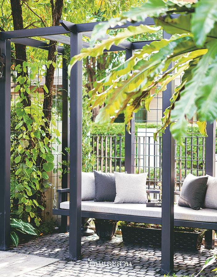 “ลูกชอบชิงช้า เย็นๆ ก็ได้ออกไปเล่นในสวนกัน ตั้งใจให้เพิ่มแสงในสวนด้วย เพราะทำงานกว่าจะกลับถึงบ้านก็เย็น เผื่อไว้จัดปาร์ตี้ที่ลานบาร์บีคิวด้วย”