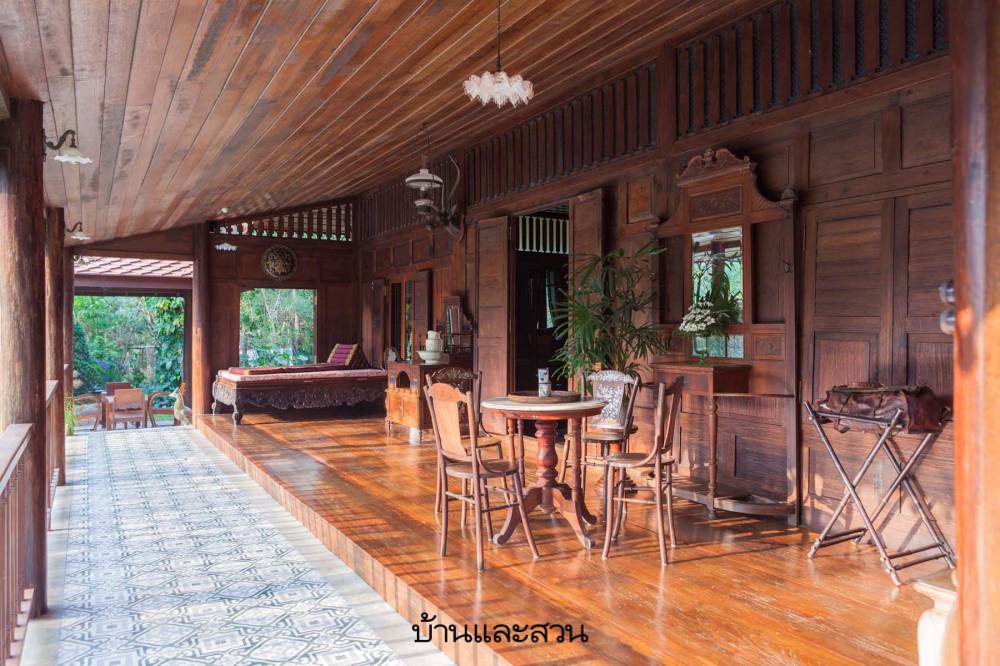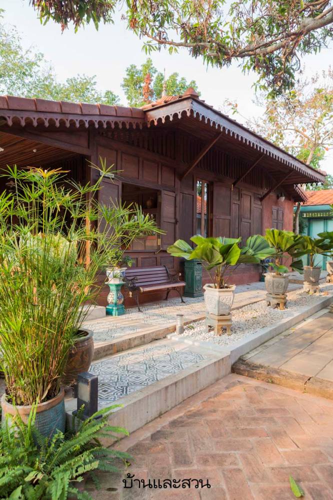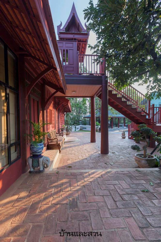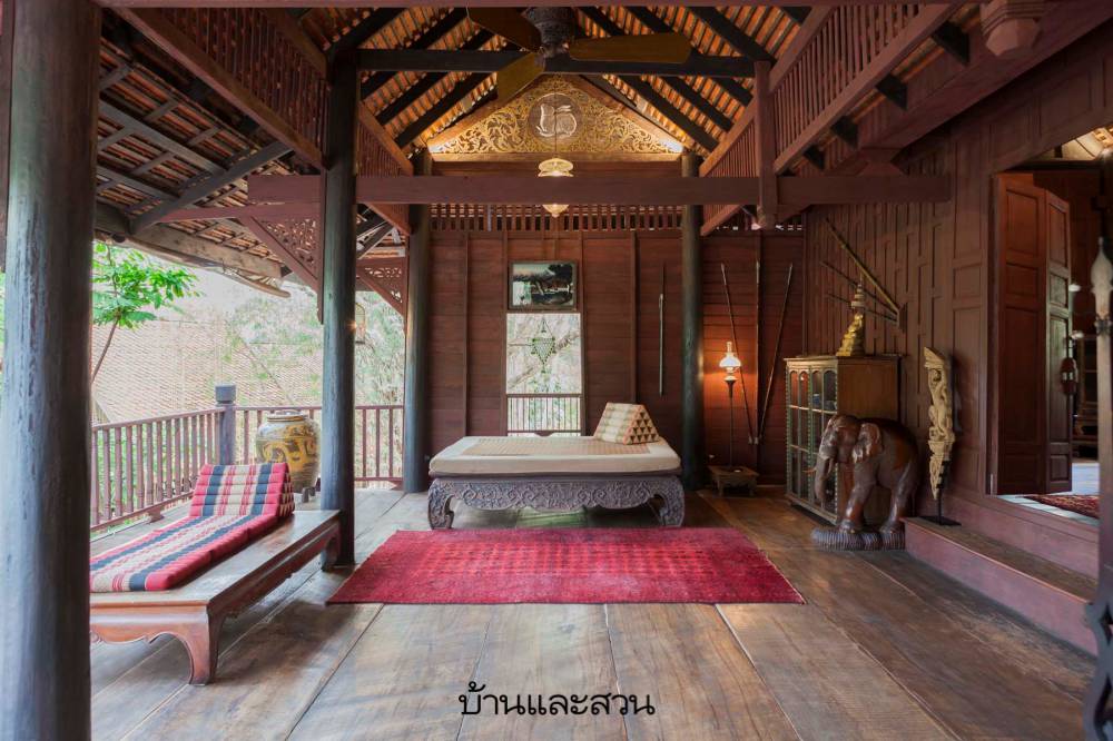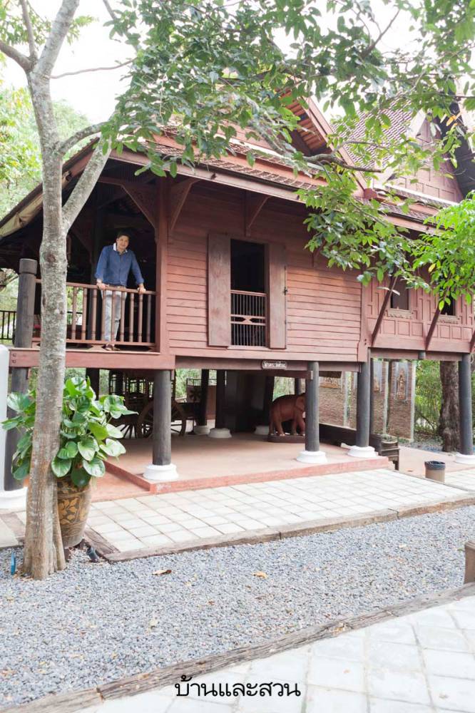 เรือนถัดไปเป็น “เรือนไทยมอญ” ที่เสร็จเป็นหลังสุดท้าย คุณโอ๊คได้มาจากอำเภอโพธาราม จังหวัดราชบุรี โดยตั้งใจทำเป็นหอพระ จุดเด่นของเรือนนี้คือไม้พื้นเป็นไม้มะม่วงป่า ซึ่งมีขนาดแผ่นค่อนข้างใหญ่ ส่วนหลังคาก็ผสมผสานกันระหว่างหลังคาแบบปั้นหยากับหลังคาแบบเรือนไทยภาคกลาง