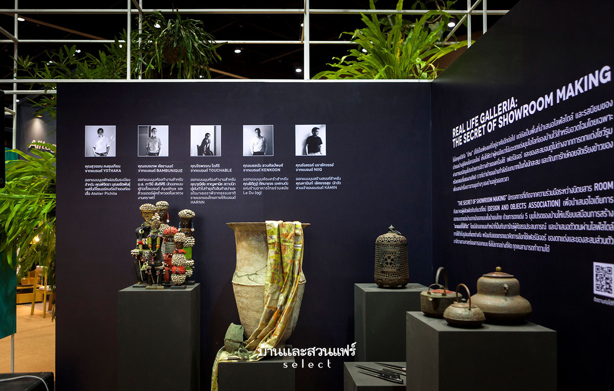 ภายในงาน บ้านและสวนแฟร์ select 2019 คุณจะได้พบกับนิทรรศการ “The Secret of Showroom Making” โดยนิตยสาร room ร่วมกับสมาคมผู้ผลิตผลิตภัณฑ์แนวดีไซน์ (Design and Objects Association) นำเสนอ 5 ตัวอย่างห้องในบ้านจาก 5 แขกรับเชิญพิเศษภายใต้คอนเซ็ปต์ “Real Life Galleria” นำโดย มล. ภาวินี สันติศิริ, คุณพิจิตรา บุณยรัตพันธุ์, คุณวุฒิชัย หาญพานิช, คุณธรรมศักดิ์ ชูทอง และคามินท์ เลิศขจรสุข ซึ่งออกแบบโดย 5 นักออกแบบจากสมาคมผู้ผลิตผลิตภัณฑ์แนวดีไซน์ ได้แก่ คุณอมรเทพ คัชชานนท์, คุณสุวรรณ คงขุนเทียน, คุณจิรพรรณ โตคีรี, คุณเมธชนัน สวนศิลป์พงศ์ และคุณรังสรรค์ นราธัศจรรย์ แบ่งออกเป็น 5 มุมโปรดที่สะท้อนไลฟ์สไตล์ของแขกรับเชิญพิเศษ ดังนี้