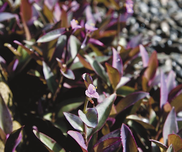 หัวใจม่วงเป็นไม้เลื้อยคลุมดินที่ทุกส่วนอวบน้ำ ลักษณะใบเดี่ยวเรียงสลับ สีม่วงเข้มปลายใบแหลม ออกดอกที่ยอดระหว่างกาบใบ มีกลีบดอก 3 กลีบ สีชมพู เหมาะที่จะปลูกเป็นสวนแนวตั้ง แต่ส่วนใหญ่นิยมปลูกเป็นไม้คลุมดินในตำแหน่งที่มีแดดเต็มวัน