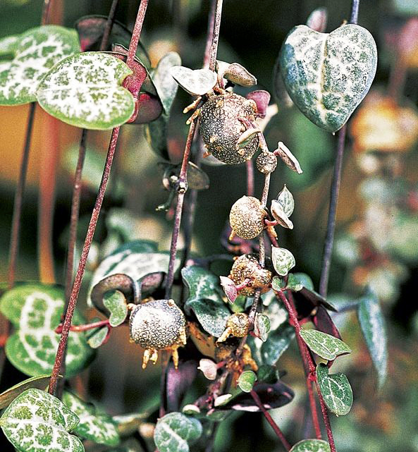 พรรณไม้เลื้อยที่น่ารักน่าชมอย่างต้นสายป่านดวงใจ หรือเซโรพีเจียลิเนียริสวูดิอาย เริ่มเป็นที่นิยมกันมากขึ้น ด้วยฟอร์มใบเป็นรูปหัวใจขนาดเล็ก ขนาดเพียง 1 เซนติเมตร ลำต้นเป็นสีม่วงแดง ทั้งยังออกดอกขนาดเล็กกระจุกกัน มองดูแล้วน่ารักน่าเอ็นดู สายป่านดวงใจเติบโตช้า และปลูกเลี้ยงค่อนข้างยากเพราะชอบอากาศเย็นแบบชนิดที่ว่าต้องดูแลกันเป็นพิเศษเลยทีเดียว