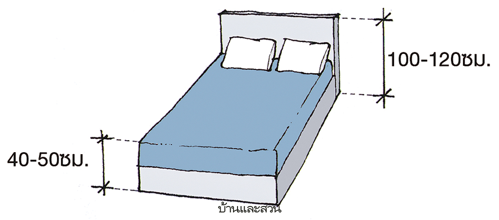 – ความสูงของเตียงทั่วไปควรอยู่ระหว่าง 40 – 50 เซนติเมตร