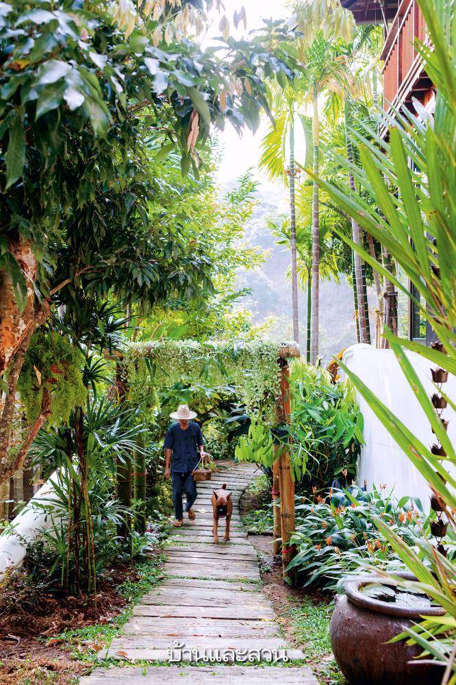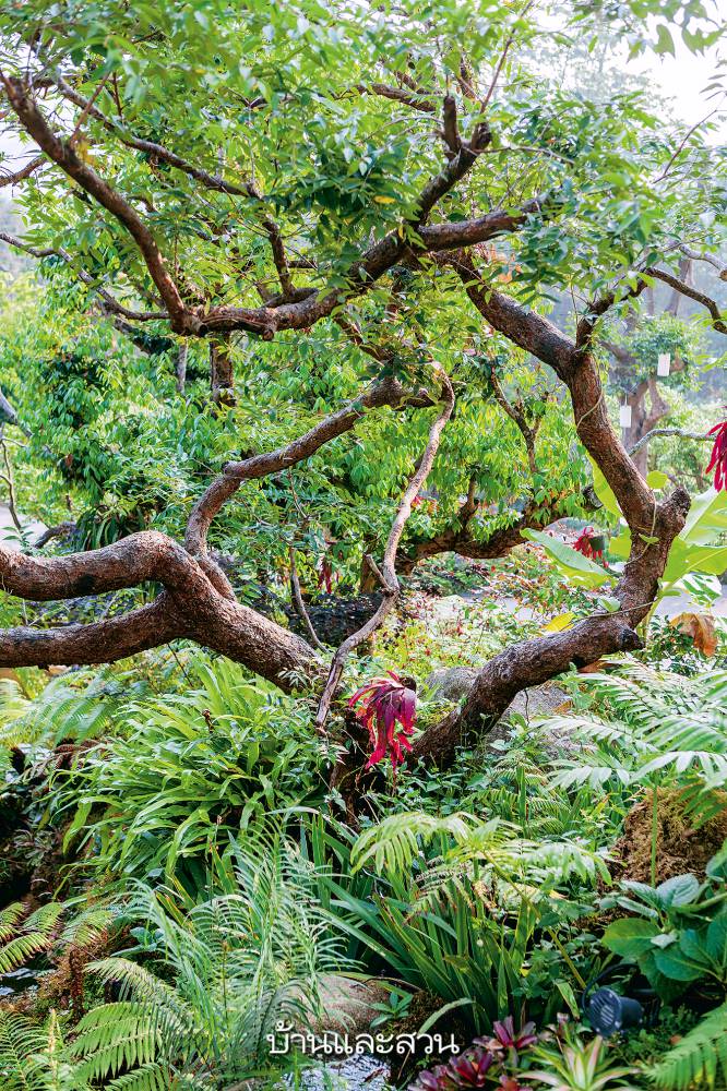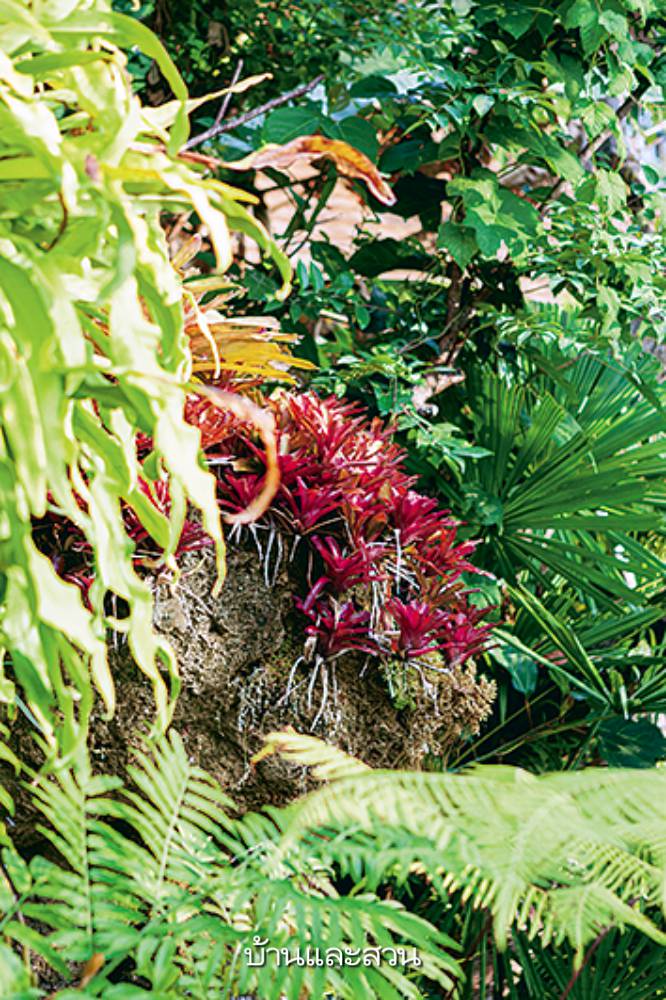 “ความชื้นเป็นตัวก่อกำเนิดชีวิต ดูแล้วมีรายละเอียดให้เราได้ค้นหาและหลงไปอยู่ในวังวนแห่งการพักผ่อน โดยมีพรรณไม้ขนาดเล็กรวมถึงมอสส์ซึ่งไม่ต้องดูแลอะไรมาก เพียงแต่ต้องรักษาร่มเงารำไรให้เหมาะสม รวมถึงรักษาน้ำในดินและอากาศต้องเพียงพอ ก็สามารถเกิดธรรมชาติอย่างที่เห็นขึ้นได้”