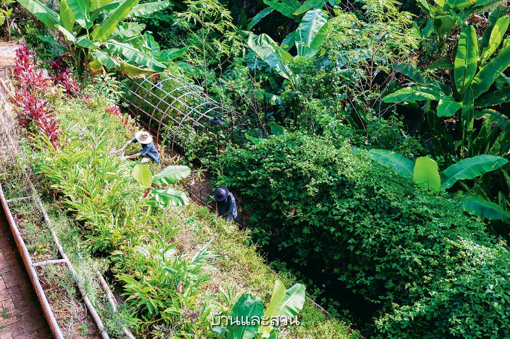 สวนในบริเวณอื่นยังคงตกแต่งให้มีบรรยากาศของสวนลิ้นจี่ดั้งเดิมอยู่ โดยมีลิ้นจี่ต้นเดิมคอยให้ร่มเงาแก่มุมนั่งเล่นและพื้นที่ชมวิวของบ้านพักในขนาดต่างๆรอบโครงการ ขณะที่พื้นที่ด้านหลังของโครงการซึ่งมีลักษณะลาดเท แม้จะปรับระดับแล้วก็ยังเสี่ยงต่อการพังทลายของผิวดินจนอาจเกิดอันตรายในอนาคต ผู้ออกแบบจึงแก้ปัญหาด้วยการทำเป็นพื้นที่ปลูกผักออร์แกนิก รวมถึงพืชล้มลุกที่รับประทานได้อย่างกล้วย มะละกอ สตรอว์เบอร์รี่ ไปจนถึงเก๊กฮวย นอกจากผลผลิตที่ได้จะนำมาประกอบอาหารให้ทางโรงแรมและร้านอาหารแล้ว พืชพรรณเหล่านี้ยังช่วยสร้างความสวยงามให้พื้นที่บริเวณนี้อีกด้วย