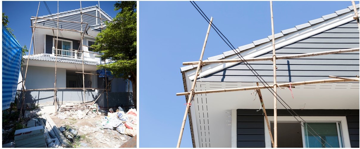 ขั้นตอนระหว่างปรับปรุงบ้านใหม่มีการปรับเปลี่ยนฟังก์ชั่นใช้งานเดิมในบ้าน ต่อเติมบ้านใหม่ เปลี่ยนฝ้าชายคา และอยู่ในขั้นตอนสุดท้ายคือทาเก็บสีให้เรียบร้อยอีกครั้ง
