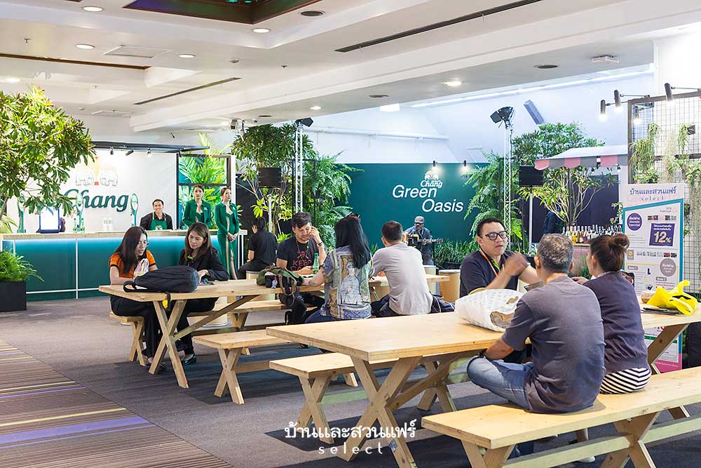 งานบ้านและสวนแฟร์ select ซึ่งจัด ณ ศูนย์การประชุมแห่งชาติสิริกิติ์ ในตอนนี้ได้ขยายพื้นที่จัดงานจนเต็มทุกโซน โดยรวบรวมกว่า 700 บู๊ธสินค้ามาให้เลือกช็อปปิ้ง ถ่ายรูป และเดินเล่นเก็บไอเดียแบบเพลินๆ กันอย่างจุใจ ภายในงานนี้ยังได้จัดเตรียมพื้นที่ให้ได้นั่งพักเหนื่อยกันด้วย นั่นคือ Chang Green Oasis ซึ่งอยู่บริเวณชั้น 2 ของอาคาร C