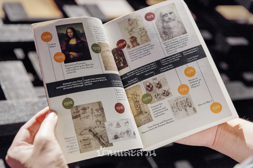 ชีวประวัติ Leonardo Da Vinci โดย Walter Isaacson เล่มนี้ได้รับรวมเอกสารจำนวนมาก ท่านผู้อ่านจะได้จุใจไปกับภาพประกอบ 4 สีมากกว่า 100 ภาพ รวมถึง ตารางเวลา (Chronology) ที่เรียงลำดับเหตุการณ์และการสร้างผลงานสำคัญของ Leonardo Da Vinci