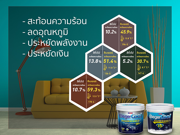 - ความ“เกลี้ยง” ขณะทาที่ทำให้สีเข้มจากเบเยอร์คูลสามารถสะท้อนความร้อนจากแสงอาทิตย์ได้สูงถึง 4%