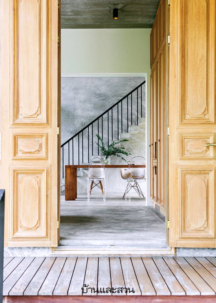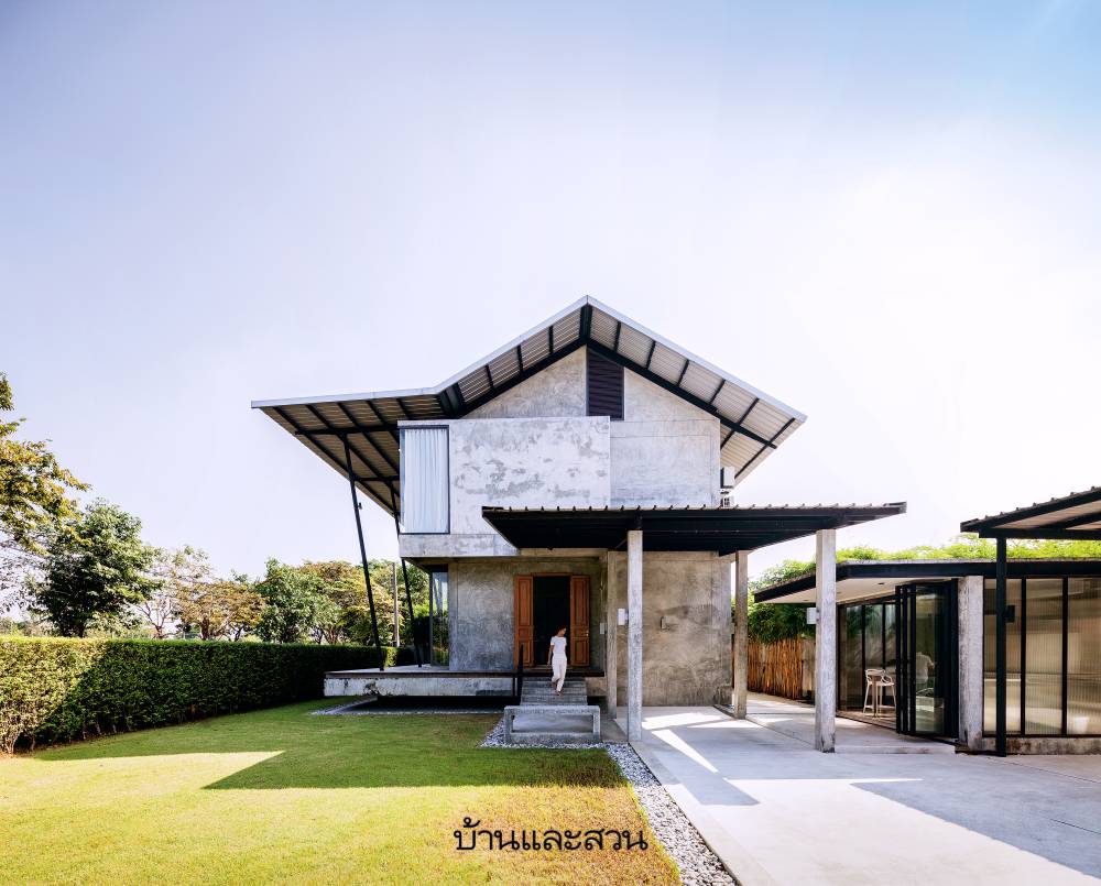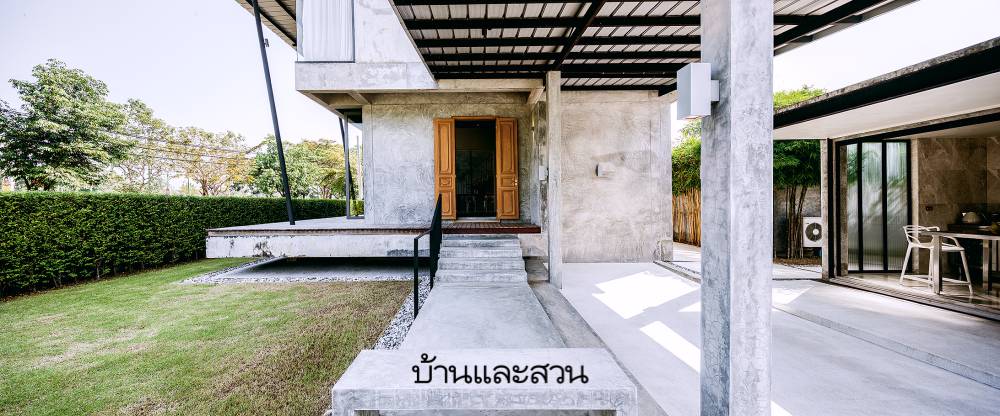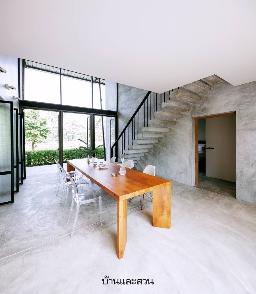บ้านปูนเปลือย ที่ดูดิบสไตล์ลอฟต์ แต่ผสมด้วยหลังคาทรงจั่วแบบไทยที่เข้ากันได้ดีกับสภาพอากาศร้อนชื้น ภายในเรียบแบบมินิมัลแต่ครบถ้วนทุกฟังก์ชันที่จำเป็น