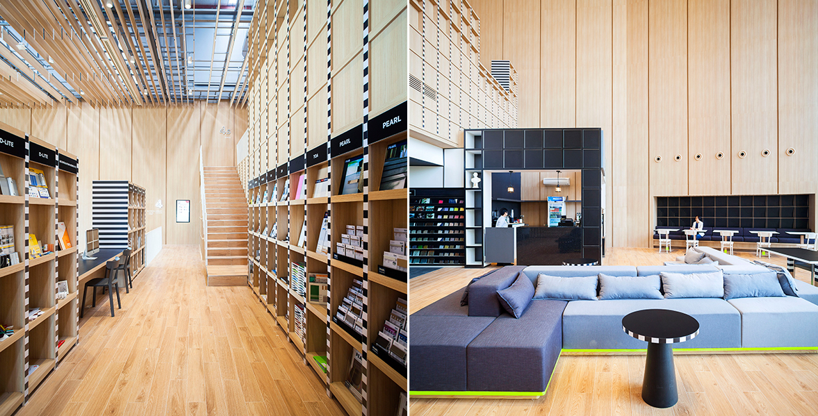 จุดสุดท้ายเรียกว่าเป็นอีกหนึ่งไฮไลต์ของที่นี่ นั่นคือ WORKSPACE พื้นที่ส่วนกลางสำหรับค้นหาแรงบันดาลใจในการตกแต่งบ้านบนพื้นที่กว่า 1,400 ตารางเมตร ซึ่งประกอบด้วย Material Library รวบรวมวัสดุสำหรับตกแต่งบ้านไว้ให้ชมกันแบบจุใจกว่า 20,000 ชิ้น นอกจากนี้ยังมีพื้นที่ทำงานส่วนกลางแบบ Free Co-working Space ที่เปิดให้สมาชิกเข้ามาใช้งานโดยไม่มีค่าใช้จ่ายใดๆ (ค่าสมัครสมาชิกยังฟรีอีกด้วย) และสะดวกสบายยิ่งขึ้นด้วย Lifestyle Café & Restaurant พร้อมเสิร์ฟเครื่องดื่มและอาหารรับประทานง่ายๆ สำหรับรองท้องขณะคุยงานในโซนนี้